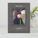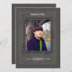Este anúncio de graduação de cinzas escuras/pewter tem um lugar na frente para você adicionar uma fotografia do formando. Na parte de trás, há uma estrutura legal projetada para espiral no meio, onde você pode personalizar facilmente todas as informações da festa de formatura.