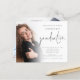 Um alternativo com preço orçamentário em um semirbrilho menor de 4,5 x 5,6" e 110 lb, com espessura semelhante à do cartão-postal. Convite para Festa de formatura do Script 6 Moderno. A graduação está em um estilo escrito à mão. Personalize facilmente o resto do texto para seus próprios detalhes e substitua as seis fotos de exemplo na frente e atrás por suas próprias.