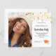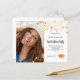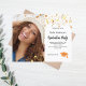 Adicione sua própria foto vertical do formando. Uma cor de fundo branca clássica, decorada com estrelas douradas falsas. Personalize e adicione um nome e detalhes da parte.