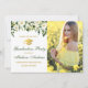 Cartão de Convite para Festa de formatura de Fotos Dourada, Verde Floral, Branco