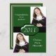 Este convite simples, mas clássico, é uma forma excelente de anunciar a sua festa de formatura. Quer você (ou seu filho) esteja se formando no segundo grau ou na faculdade, esses convites são o caminho perfeito! Design apresenta um design de quatro retângulos na parte frontal. Duas das áreas retangulares são verdes e as outras duas são áreas para você adicionar fotos do formando. Adicione duas da mesma foto ou duas fotos diferentes.A escolha é sua! Dentro as áreas de retângulo verde é texto em fonte branca de rico. Todo o texto pode ser personalizado para atender às suas necessidades. Ao longo do centro do convite há uma banda preta com uma área de botão verde brilhante. Adicione o ano de graduação a esta área! O reverso do Convite para Graduação de Fotos Duplas Verde é verde estável com forma branca à sua volta. O texto está na mesma fonte branca de rico. O texto é totalmente personalizável! Esses convites de classe são excelente para o formando cujas cores de segundo grau ou faculdade incluem verde e preto ou verde e branco. Este convite também está disponível em outras cores!