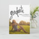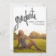 Um design simples e adorável que mostra a foto do seu formando na frente com toda a festa ou detalhes do anúncio no verso. design de tipografia negra elegante com um olhar feminino, com uma letra de mão. Maneira ocasional, contemporânea e bela de destacar a celebração da sua filha.