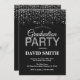 Cartão de Convite para Festa de formatura em Preto e Silver Glitter. O Silver Glitter Confetti. Black and White Stripes. Digital Imprimível. Para mais personalização, clique no botão "Personalizar" e use a ferramenta design para modificar este modelo.