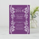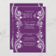 Comece a sua classe de evento de graduação de 2014 exatamente com nosso convite formal, clássico e na moda branco de vintage florescer design de festa de formatura de rolagem definido em um plano de fundo roxo. Convite de formatura moderno para a formatura de um segundo grau ou formandos e é perfeito para um formando de menino ou formando de menina. Fácil de personalizar, basta preencher suas informações de formando e você está pronto para ir. Disponível em nosso compro em uma variedade de cores populares da escola. Visite nosso compro em www.celebrateitgraduations.com para uma grande variedade de convites para a graduação de tendências!