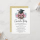 Convite para Festa de formatura de Script Casual Moderno - Tipografia de script moderna com um design mínimo. Belo formando de morena com arco de coquete cor-de-rosa e acentuado com flores cor-de-rosa. A placa é realçada com uma borda fina em ouro. O Convite à festa de formatura faz parte de uma coleção. Nosso cartão postal é uma maneira conveniente e mais econômica de enviar seus convites. Encorajamo-lo a visitar o seu Gabinete de Posto para confirmar a taxa correta de envio postal. Nós odiaríamos que seus belos convites fossem devolvidos para você por postagem incorreta. Obrigado por olhar e Parabéns para o Formando! Se eu puder receber alguma ajuda, por favor, não hesite em acessar bev@magnoliaandthistle.design.