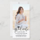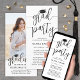Compartilhe a alegria de um segundo grau ou formandos e convide a família e os amigos a comemorarem com a elegante combinação de anúncios fotográficos e convites de festas. A imagem e o texto deste modelo são simples de personalizar e as cores são fáceis de mudar usando a ferramenta Zazzle design. O design moderno preto e branco apresenta um boné de conselho de argamassa, caligrafia de script de tendências, tipografia clássica elegante e uma foto de sua escolha, como uma foto de mais velho ou imagem da cerimônia de início. Este cartão de graduação vertical baixável chic é uma na moda para anunciar uma celebração especial. Parabéns ao formando!
