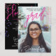 Celebre sua graduação em estilo com este Na moda moderno convite duplo! A frente apresenta um design minimalista com ousado "Formando" escrito à mão, cor-de-rosa magenta, na caligrafia moderna, colocado sobre uma grande foto do formando, enfeitiçado com confete lúdico. Você pode facilmente substituir a foto e o texto por sua própria. O verso inclui um grande "Hooray!" na tipografia escrita à mão, cor-de-rosa magenta, sobre um fundo preto elegante, com fontes modernas a preto e branco para detalhes de partidos, e um roteiro cor-de-rosa para o nome. Todos os elementos são colocados contra um pano de fundo preto-e-branco. O formato de download digital também está disponível para sua conveniência.