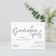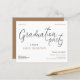 Há duas opções de papel a escolher para esse tamanho (4,5 x 5,6") na faixa de Orçamento. Para este produto, eu recomendaria o semibrilho, que é um estoque de cartão de 110 gsm, semelhante em espessura a um cartão postal. A opção Satin é um papel muito mais fino, 80gsm. O padrão é definido como semirbrilho. POR FAVOR, NOTE que existe UM por folha. Convite para Festa de formatura de Texto do Script de Orçamento. Um simples design tipográfico, com o cabeçalho principal, a Festa de formatura, em uma fonte preta de tendência definida. O resto do texto em preto e ouro é facilmente personalizado e você também pode alterar as cores e o estilo do texto editáveis se desejar, por meio do clique, personalizar mais a opção, bem como o fundo ouro no verso.