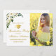 Cartão de Convite para Festa de formatura de Fotos Dourada, Verde Floral, Branco
