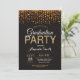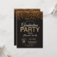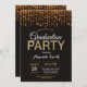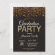 Cartão de Convite para Festa de formatura em Preto e Dourado com Brilho. Dourado Glitter Confetti. Black and White Stripes. Digital Imprimível. Para mais personalização, clique no botão "Personalizar" e use a ferramenta design para modificar este modelo.