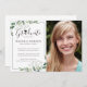 Convide amigos e familiares para comemorar com o formando com esse convite de formatura moderno, com folhas de aquarela eucalipto. A fotografia é para fins ilustrativos e pode ser alterada para uma de vocês.
