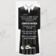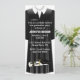 O convite de festa de formatura de uma na moda, com um vestido de graduação preto de uma senhora contra um fundo branco. Gráficos bonito de um diploma, com boné de formatura preto, no final do convite. O texto em branco está pronto para personalizar o dia especial da sua filha.