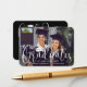 Esses convites de graduação são pequenos, mas grandes em simplicidade de na moda. Anuncie a conquista dos formandos e convide a família e os amigos a celebrarem com minicartões de festa de formatura elegantes. O pequeno tamanho de cartão de visita de 3,5 pol x2,5 pol facilita a inserção com anúncios de graduação ou a entrega à família e aos amigos (eles não vêm com envelopes.) Vendido em pacotes a um preço barato, essas inserções oferecem uma opção chic para permanecer dentro de um orçamento. A imagem e todos os textos neste modelo são simples de personalizar, e as cores podem ser personalizadas usando a ferramenta Zazzle design. O design moderno preto e branco apresenta uma caligrafia manuscrita de script com um boné de conselho de argamassa, uma elegante tipografia clássica e uma foto de sua escolha, como uma foto de mais velho ou imagem da cerimônia de início. Este convite de formatura é uma forma única de anunciar uma celebração especial para qualquer grupo de formandos, como irmãos, melhores amigos, primos, gêmeos, irmão e irmã, etc. Parabéns aos formandos!