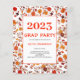 Convite de festa de formatura de orçamento. Padrão floral dos anos 70. Fácil de alterar o texto da página do produto.