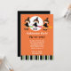 Convide sua família e amigos para a festa de Halloween com este convite festivo. Este convite preto e laranja mostra três bruxas bonitas em vassouras e lua de cheio. ©BabyStar Designs