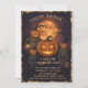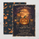 Defina um tom assustador para as suas festividades de outubro com este convite de Halloween em estilo retrô. Com uma ilustração sinistra de figuras de cabeça de abóbora assustadoras (espantalhos de Jack-o'-lantern) sob uma lua cheia brilhante, este design captura a essência de um clássico terror. A borda de pergaminho desgastado e a tipografia gótica lhe dão uma aparência autêntica e envelhecida, perfeita para uma festa de fantasias para adultos ou um evento sofisticado de casa assombrada.