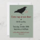 Convite de festas com minha imagem original criada digitalmente de um corvo ou corvo. O corvo está preto com olhos vermelhos no sangue. Ele segura uma corrente na boca da qual passa uma nota vestida no tempo lendo "Nunca mais". Ele está contra um fundo cinza-verde com linhas onduladas, tônicas e onduladas. Este convite totalmente personalizável é perfeito para o Halloween, mas pode ser apropriado para a maioria das vezes.