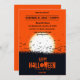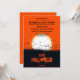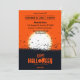 Festa de Halloween Convidando morcegos voadores de design preto e laranja em um campo na noite de uma lua de cheio