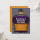 Um convite de festa de Halloween apresenta uma garrafa mágica ou de veneno como pano de fundo para o texto. A citação Algo Está Sendo Preparado Em Nossa Casa é engraçada e convidativa.