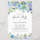 Convide seus convidados para o seu evento com este convite personalizável para festa de jardim. Ele apresenta guirlandas florais em aquarela de rosas azuis, roxas e brancas, anêmonas e hortênsias. Personalize este convite de festa de jardim floral adicionando os detalhes do seu evento. Este convite de festa de jardim de hortênsias é perfeito para festas de primavera e inverno.