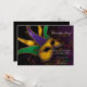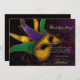 Laissez les bons temps rouler. Mardi Gras, Terça-Feira Gorda, convite para festa de Carnaval com cores não tradicionais de roxo, verde e amarelo. Celebre ao estilo de Nova Orleans e não esqueça as contas.
