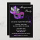 Convite para Festa de Máscaras. Um convite sofisticado e elegante com uma máscara de máscara prateada e roxa perfeita para uma festa de Sweet Sixteen ou celebração de Mardi Gras.