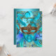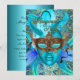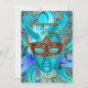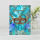 Convite para Festa de Aniversário com Festa de Máscaras. Convite para Festa de Aniversário com máscara de pena brilhante azul-esverdeado elegante e design dourado damasco.