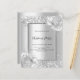 Fundo com aparência de prata falso decorado com flores, flores e brilho de prata falso, faíscas. Personalize e adicione os detalhes da sua festa. Letras pretas.