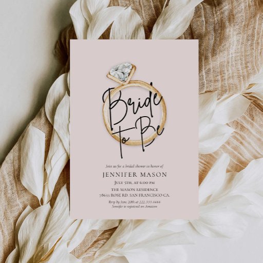 Celebre seu noivado com este convite moderno e na moda de festas de noivado. Apresentando um simples e belo anel de noivado de ouro com letras interligadas. Itens correspondentes na nossa loja, Design do Partido Cava.