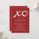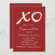 Um "XO" branco brilhante decora este convite de noivado num fundo vermelho profundo, fazer-o chic, modesto, romântico e elegante, e perfeito para o Dia de os namorados ou a Festa de noivado de Natal.