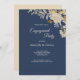 Este convite à festa de noivado de outono de Dusty combina uma víbora antiga com um olhar de flor selvagem da boêmia retrógrada. As elegantes e neutras flores brancas em cima do azul empoeirado, fundo marinho, com sua tipografia caligráfica clássica, permitem um tema formal, mas selvagem e floral de celebração do estilo vintage.