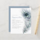 Um valor para o alternativo do ORÇAMENTO em tamanho menor de 4,5 x 5,6" de semirbrilho de 110 lbs, que é de espessura semelhante a um cartão postal (no entanto, não é adequado para uso como cartão postal). POR FAVOR, NOTE que existe UM por folha. Convite à Festa de noivado de Pancas. Uma bela pena de pavão em tons de azul-turquesa está ao longo do lado direito e a tipografia está alinhada à esquerda. Personalize facilmente o texto. Um azul empoeirado de coordenação está atrás.