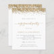 Um valor para o alternativo do ORÇAMENTO em tamanho menor de 4,5 x 5,6" de semirbrilho de 110 lbs, que é de espessura semelhante a um cartão postal (no entanto, não é adequado para uso como cartão postal). OBSERVE QUE HÁ UM convite por folha Orçamento Dourado Convite para Festa de noivado de Script Glitter. Estilo de vidro com uma borda de brilho dourado falso no topo de cada lado, e a festa de noivado está em um script de estilo de escrita manual. Personalize facilmente o texto para seus próprios detalhes. Você também pode alterar as cores do texto e do plano de fundo por meio da opção personalizar mais, se desejar.