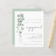Um valor para o alternativo do ORÇAMENTO em tamanho menor de 4,5 x 5,6" de semirbrilho de 110 lbs, que é de espessura semelhante a um cartão postal (no entanto, não é adequado para uso como cartão postal). POR FAVOR, OBSERVE QUE HÁ UM convite por folha. Convite para Festa de noivado de Script Eucalyptus de Orçamento. Estilo moderno minimalista com este design botânico, com folhagem de aquarela fluindo para baixo no lado esquerdo e texto para a direita. Um script manuscrito definido para o Noivado e o resto do texto que você pode personalizar facilmente.