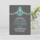 Convite para festas de noivado náuticas rústicas românticas com âncora azul-turquesa e luzes de cordas no fundo do quadro de cinza das ardósias. Convidado perfeito para a praia, festa de noivado náutica e de destino com luzes cintilantes - luzes amarradas decor. — Entre em contato comigo se tiver dúvidas sobre o design ou se tiver uma solicitação de cor personalizada. — Se você pressionar o botão PERSONALIZAR TI, poderá alterar o estilo da fonte, a cor, o tamanho, movê-lo etc. ele lhe dará mais opções!