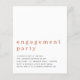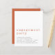 Um valor para o alternativo do ORÇAMENTO em tamanho menor de 4,5 x 5,6" de semirbrilho de 110 lbs, que é de espessura semelhante a um cartão postal (no entanto, não é adequado para uso como cartão postal). POR FAVOR, OBSERVE QUE HÁ UM convite por folha. Simples Festa de noivado Terracotta de Orçamento Convite. O cabeçalho é grande em na moda lowercase com os detalhes abaixo. Muito espaço branco no topo para uma sensação contemporânea! Personalize facilmente o texto para seus próprios detalhes.