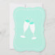 Na moda festa de noivado de convite feito em verde-menta, com gráficos de dois copos de champanhe, no topo do convite, e um quadro decorativo branco ao redor da borda. O texto em preto e branco está pronto para personalizar a sua festa. Bonito convite que qualquer casal adoraria.