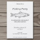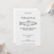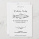 Um convite simples e minimalista para festa de pesca com uma ilustração de uma truta em arte linear. Você pode usá-lo para uma aposentadoria, um aniversário, uma festa ao ar livre, um churrasco de peixe, etc.