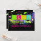 Convite para festa de pintura neon com brilho no escuro. Personalize a frente e o verso para qualquer evento. O texto pode ser configurado da maneira que você preferir.