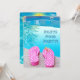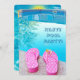 Flip de bolinhas rosa e branca flutuando pela piscina de natação para a convite de festas de piscina de verão.