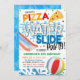 Um ótimo convite para celebrar uma festa de pizza e tobogã de qualquer tipo!
