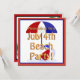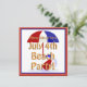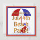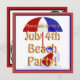 Um gráfico de um bonito guarda-chuva de praia e um artista/designer de bola de praia Charmaine Paulson em um convite de festas de praia do dia 4 de julho. O convite tem modelos de texto para a sua personalização. ©2013charmanepaulson