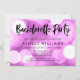 Festas de solteira de tendências com luzes brilhantes roxas e fontes modernas de script.