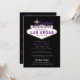 O icônico sinal de "Bem-vindos a Las Vegas", design, foi exibido com a leitura "Party in Las Vegas". Texto retrorativo do estilo para o nome da noiva e o nome do casino. O backer de padrão retroestrelado é opcional. Cantos arredondados opcionais. Esquema de cores preto e roxo. Outras combinações de cores estão disponíveis.