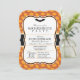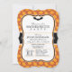 Elegante convite de festa de solteira para o Halloween no padrão laranja de abóbora. Possui um cabeçalho de morcego preto com teia de aranha e padrão de abóbora. Convite para excelente para festas de solteira de outubro!
