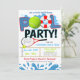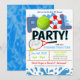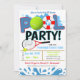 Faz um ótimo convite para celebrar uma festa de equipa de ténis de piscina para crianças, aniversário, final de época, final de verão, final do ano letivo, ou para qualquer outra ocasião divertida de festa de piscina desportiva!