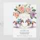Organize uma sofisticada celebração "Run for the Roses" com este deslumbrante convite de festa do Kentucky Derby, apresentando uma ilustração dinâmica em aquarela de dois cavalos de corrida competindo ombro a ombro. O design é coroado por um buquê exuberante de rosas em tons de pêssego, rosa e roxo, emoldurado por um escudo dourado elegante que destaca o texto "Derby Party" em bela caligrafia.