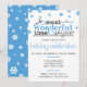 O nosso Cartão de Foto de Férias do Momento Mais Maravilhoso do Ano é uma maneira perfeita de convidar amigos e familiares para se reunirem em qualquer celebração de inverno nesta época de festas com flocos de neve azuis elegantemente colocados em torno de tipografia bonita este convite ajudará a colocar sua família no espírito natalino.