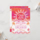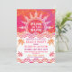 Convite Divertido ao Sol com ondas, sol rendado, palmeiras e cores tropicais quentes. Perfeito para Praia, Piscina, Doze Anos, Aniversário, Churrasco ou qualquer Festa de Verão — Basta mudar o texto. Personalize com seu próprio texto. Espaço na parte de trás para mais informações ou foto. Ilustração Original por pj_design. Por favor, verifique minha loja para mais como este.