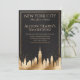 Receba seu evento com o verdadeiro estilo de luxo de Nova York com este convite de festa com a silhueta da cidade em preto e dourado. Com um fundo preto fosco elegante e um design dourado da paisagem urbana, este convite versátil é perfeito para uma festa de aniversário no terraço, celebração de ocasião especial, festa de noivado, evento de Ano Novo, soirée corporativa ou noite de coquetel sofisticado em Nova York.